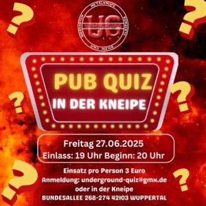 Anmeldung unter: underground-quiz@gmx.de — Ohne Anmeldung, keine Teilnahme, da wir entsprechend die Sitzplätze einplanen. 😉