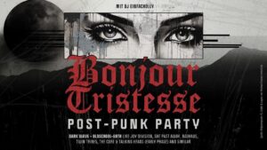 Mit Musik u.a. von She Past Away, Lebanon Hanover, Ductape, Siouxsie, Boy Harsher, Tempers, The Cure, Chameleons, Clan of Xymox, Cold Cave, Twin Tribes, Joy Division, Drab Majesty, Actors, Ritual Howls, We Are Waves, Isla Ola und vieles mehr