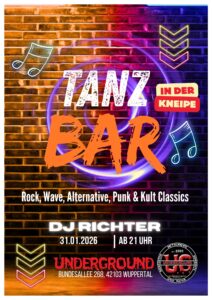 An diesem Samstag lädt das Underground zu einer Nacht voller musikalischer Vielfalt ein. DJ Richter bringt Rock, Wave, Alternative, Punk und Kult Classics in die Kneipe und sorgt für den passenden Sound bis spät in die Nacht.
